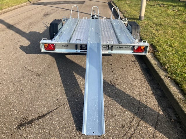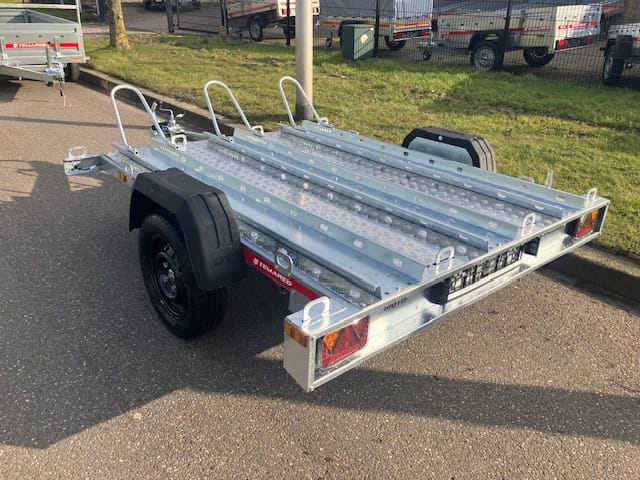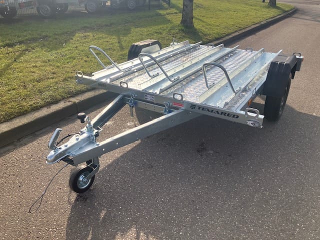 Temared Moto Premium is de Motoraanhanger voor een betaalbare prijs handig klapbare V-dissel om te kiepen of compact op zijn achterkant neer te zetten zodat hij weinig ruimte inneemt als je hem niet gebruikt.