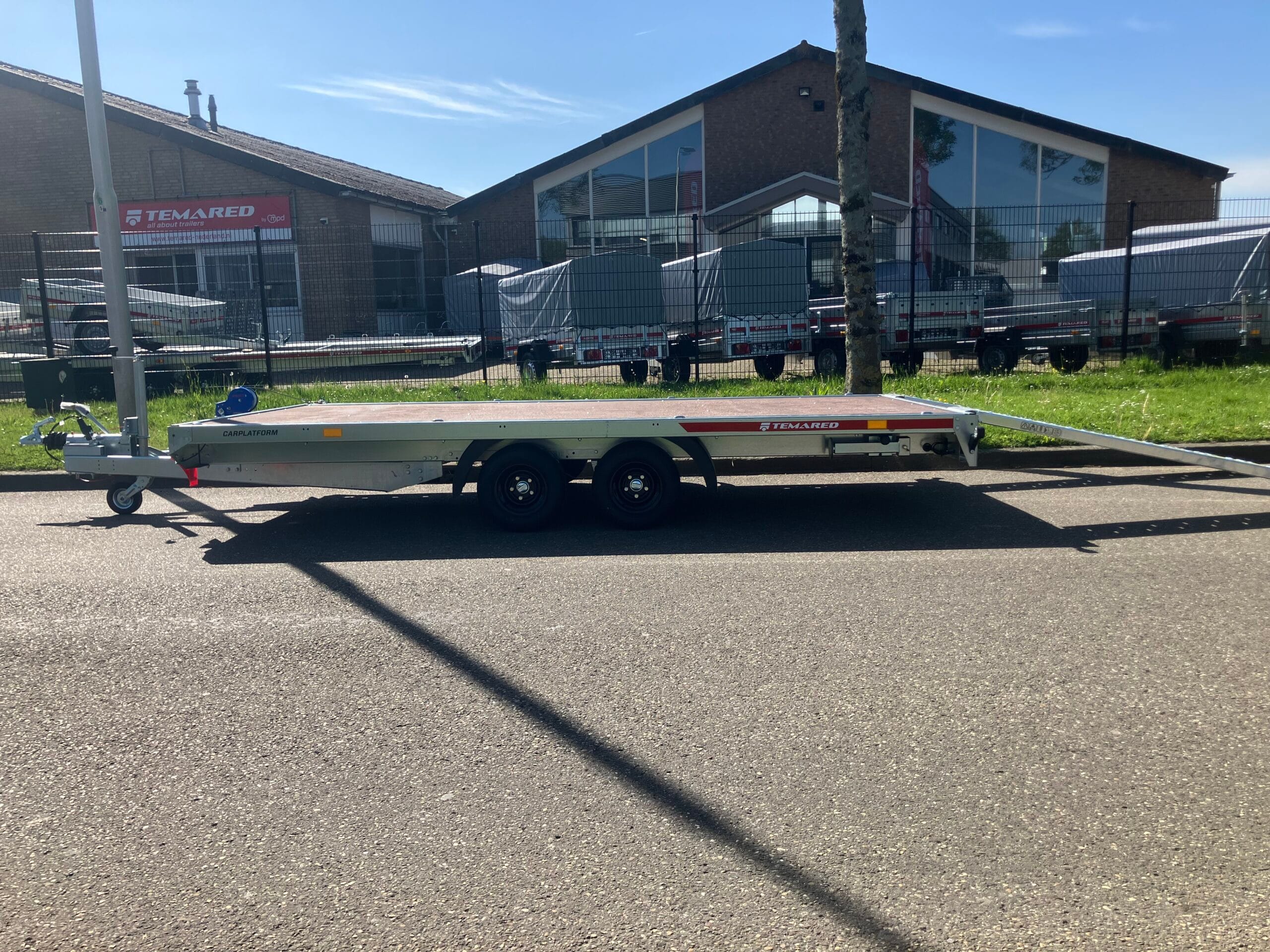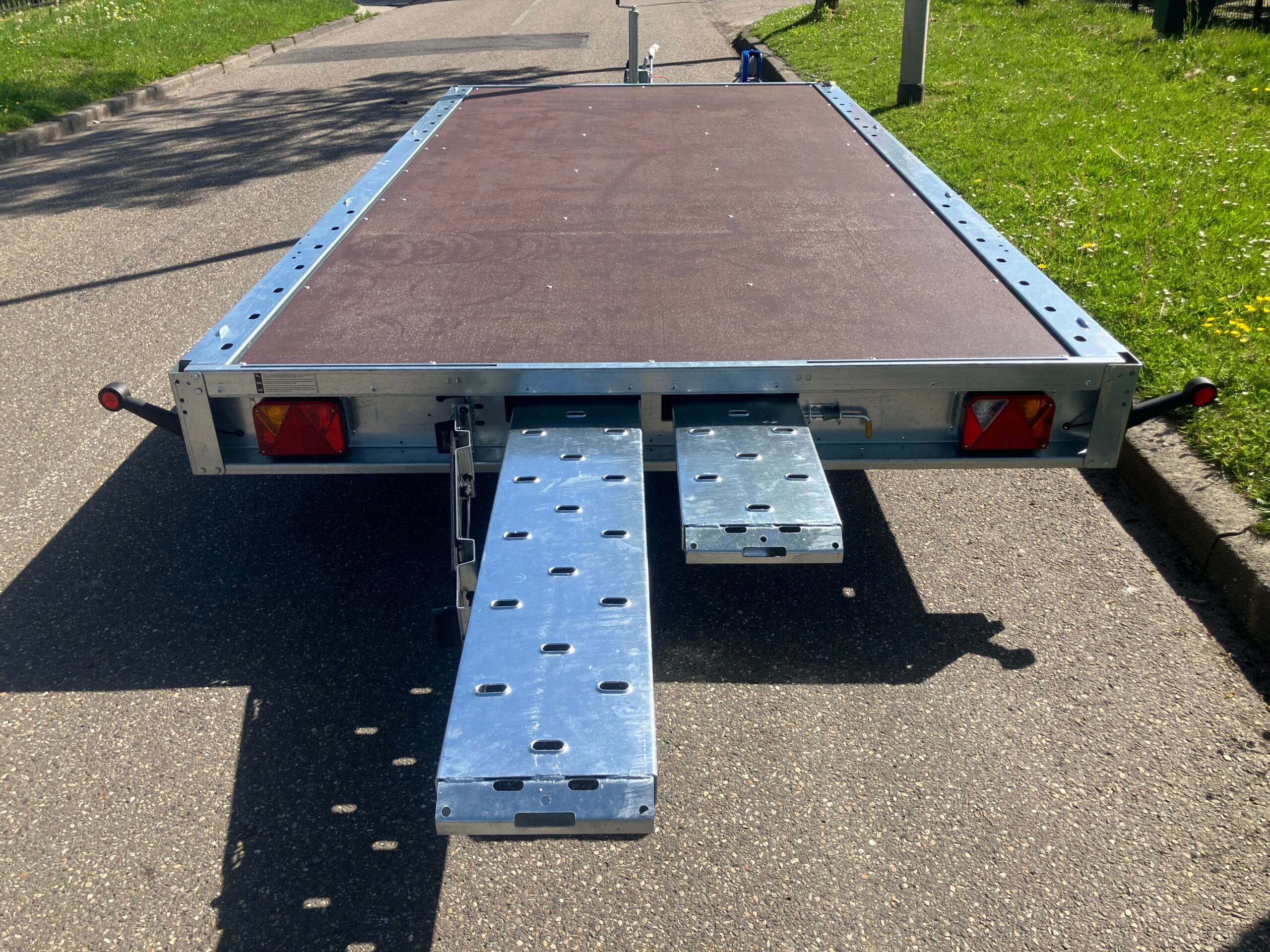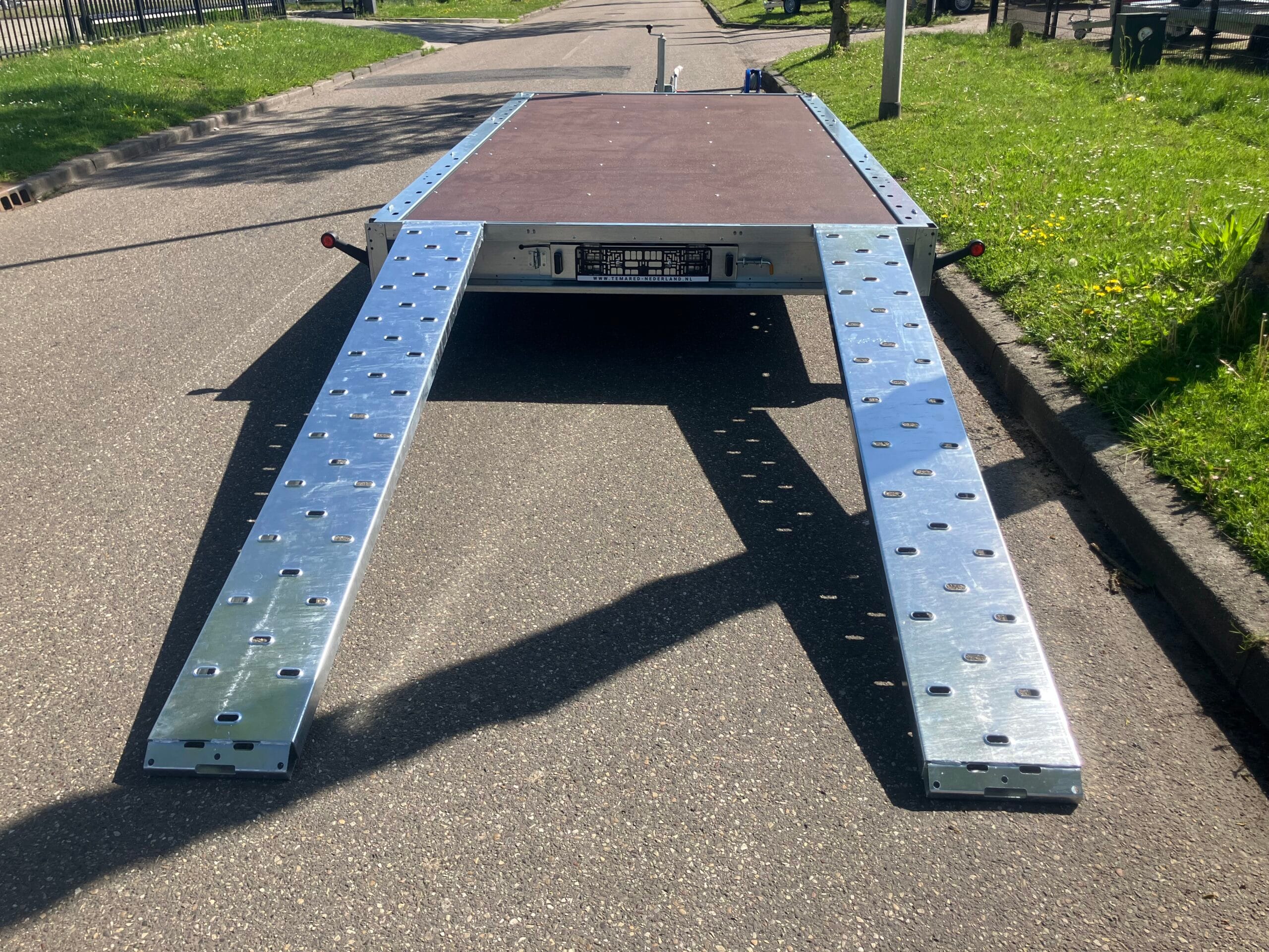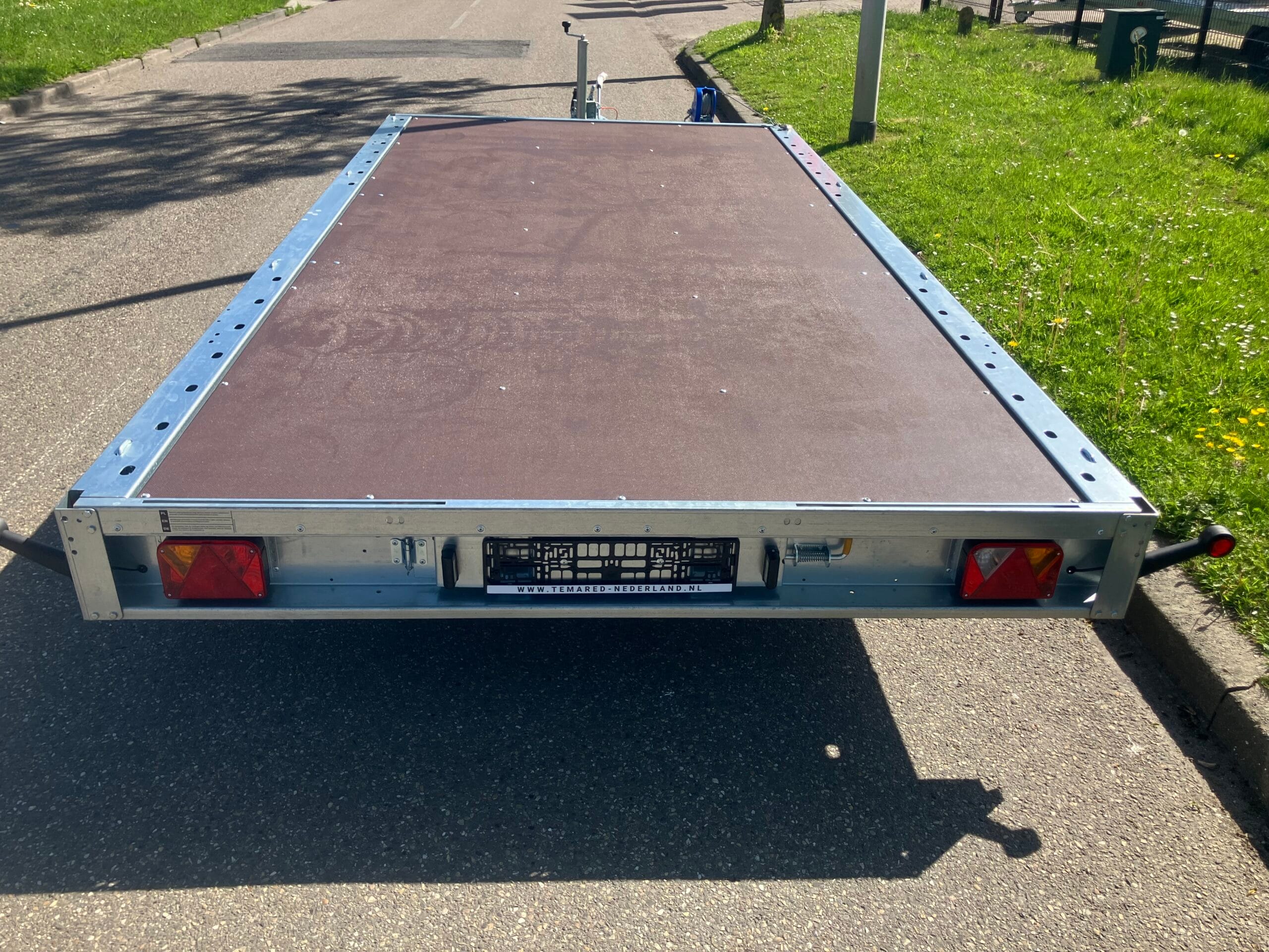 De Temared Carplatform 4021/2 Plywood Uniek door zijn extra brede Laadruimte Lengte 4050 x Breed 2160. tot 2385kg laadvermogen.